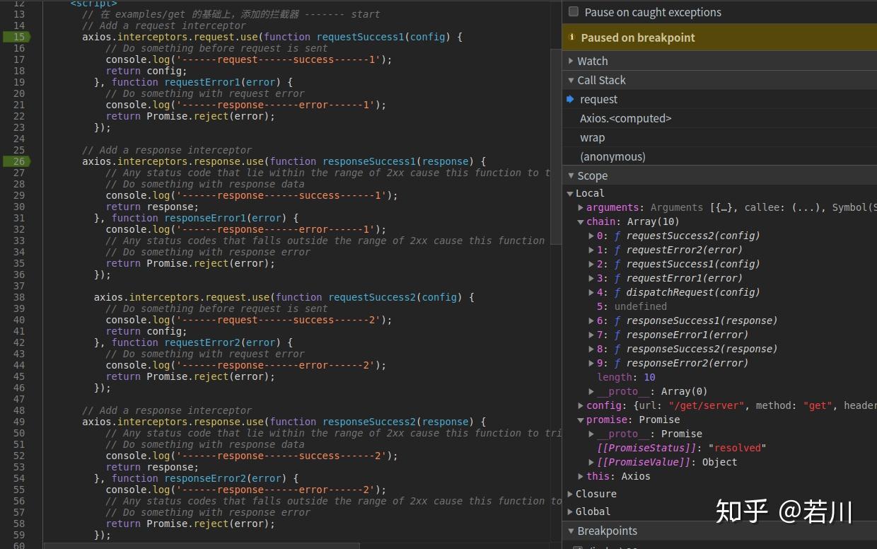 建议 clone 若川的 axios-analysis github 仓库,按照文中方法自己调试,印象更深刻。