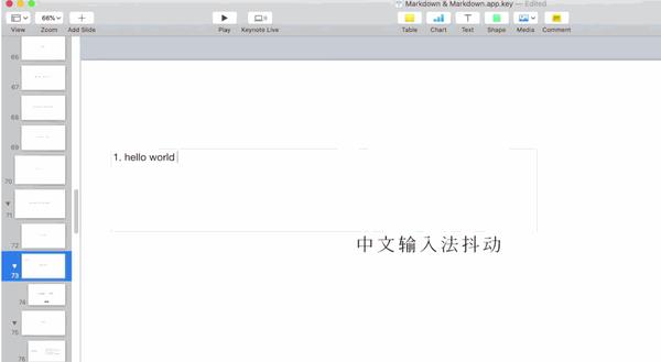 Mac 上只要是 native 的 App,基本上都会面临中文输入法抖动的问题,即使是苹果官方的 Keynote、Pages 也一样。大凡调用了 NSTextView (Mac 上输入文本的主要视觉模块),没有特殊处理过,就会存在这个问题。