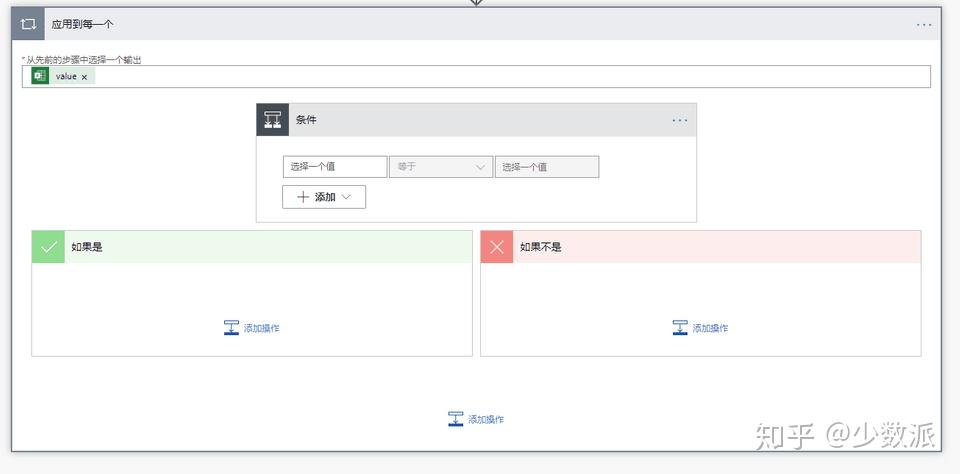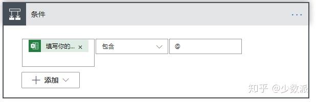 然后点击「应用到每一个」控件里面的「添加操作」,创建一个「条件」控件。因为表单里面可以填写任意文本,所以这里我们做一个简单的筛选。