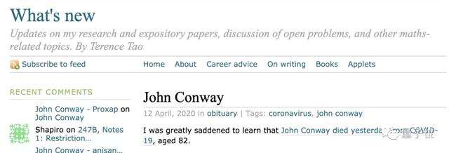 陶哲轩博客:https://terrytao.wordpress.com/2020/04/12/john-conway/