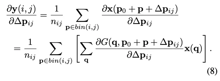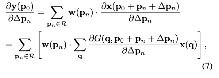 公式2可变形卷积的偏移值的梯度就算如公式7,