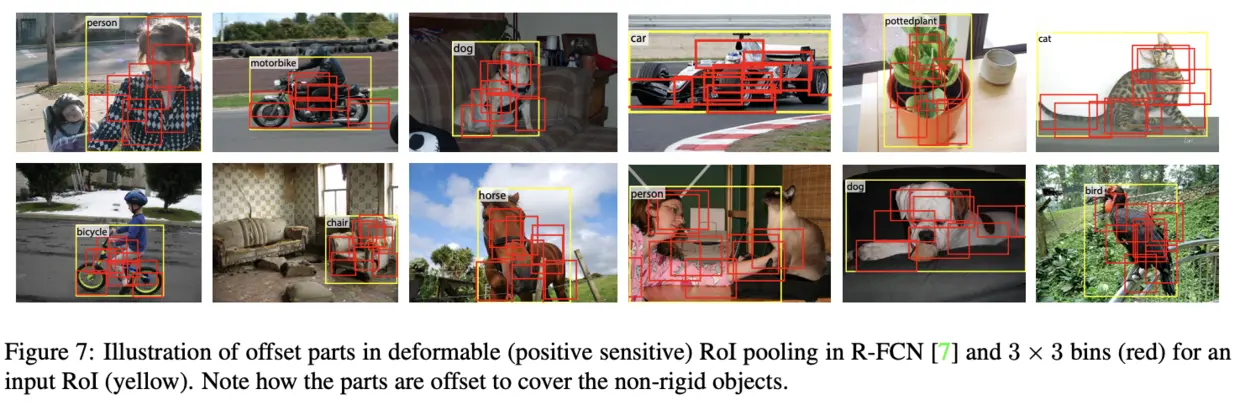 图7为RoI区域对应的bin的位置,可以看到bin移动到了与物体更相关的位置。