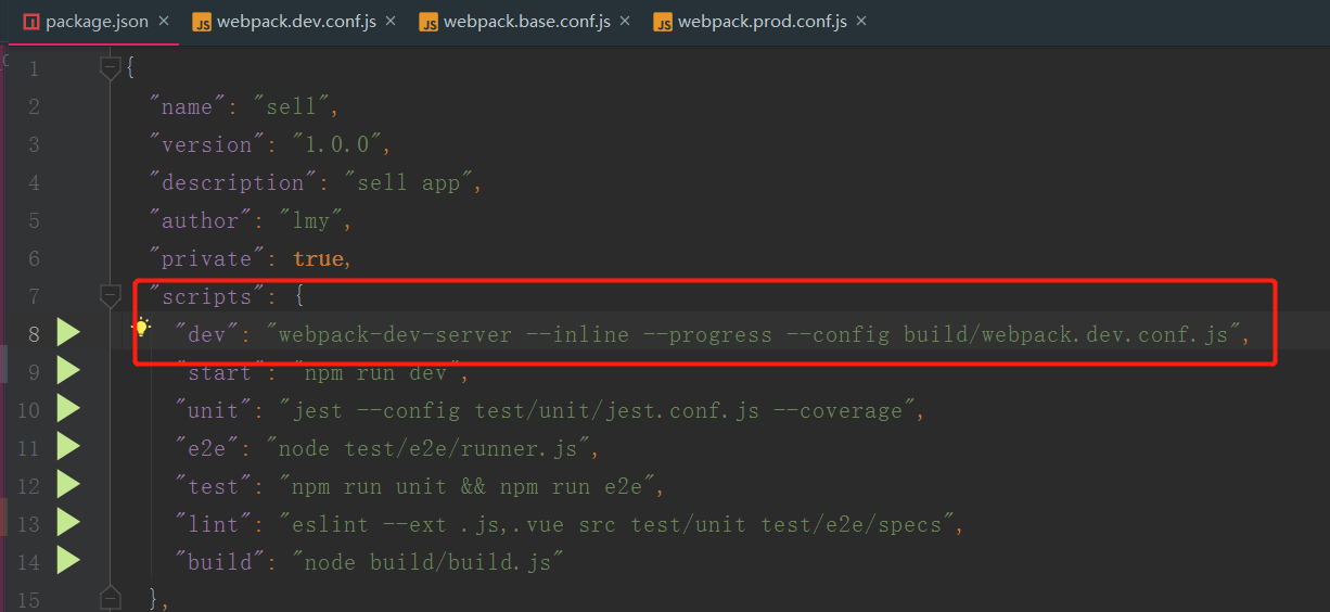 2.安装完成之后,需要启动整个项目运行,npm run 其实执行了package.json中的script脚本,npm run dev的执行如下