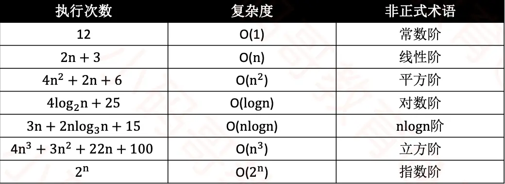 - 时间复杂度:估算程序指令的执行次数、执行时间