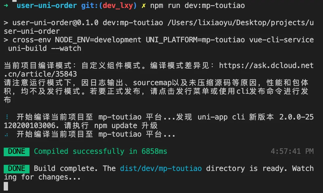npm run dev:mp-toutiao // 实时监听编译