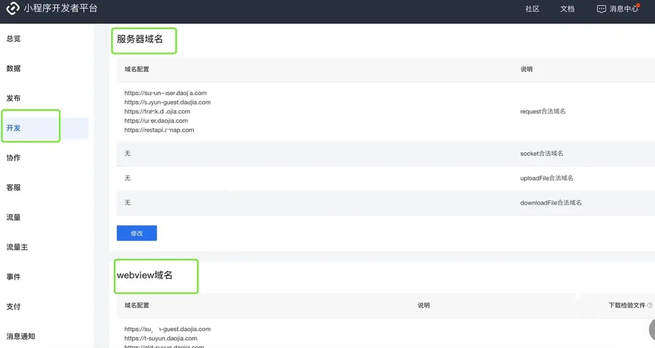 - 前置准备,在后台配置好相关线上域名