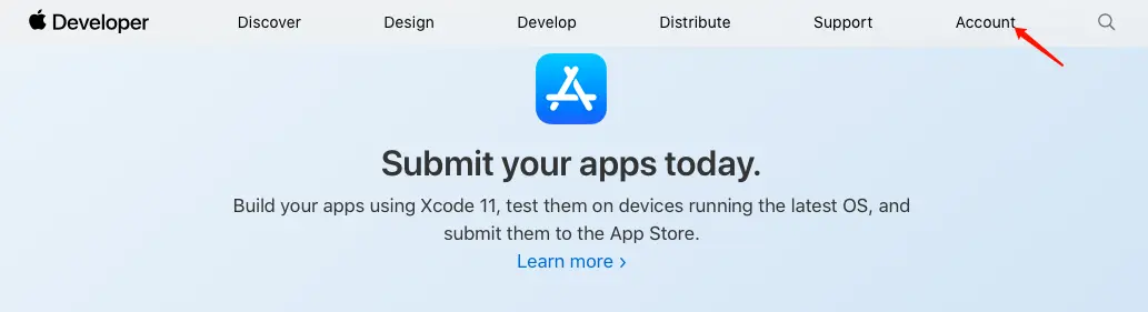 - 首先去开发者官网Apple Developer,点击右上角Account。