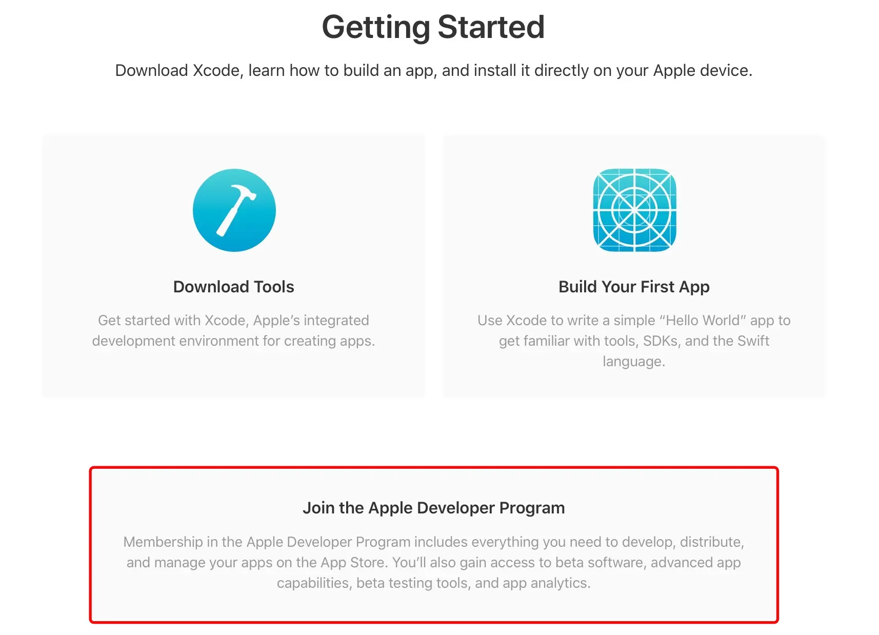 - 登录成功后,进入如下页面,点击Join the Apple Developer Program。