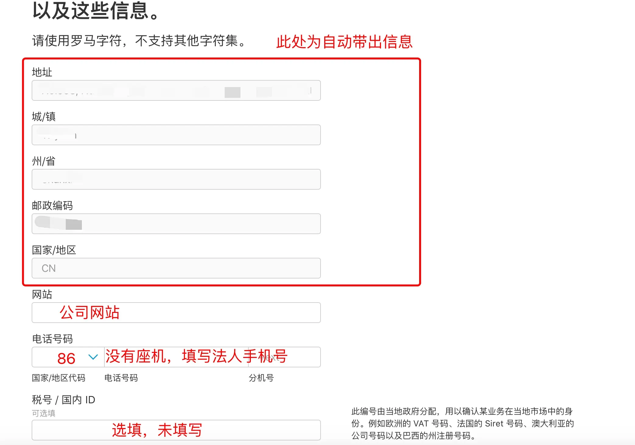 注:电话号码处我们没有座机,我填写的法人手机号,其他号码也可以 (这里有一个问题,请看第12步的'注') 。