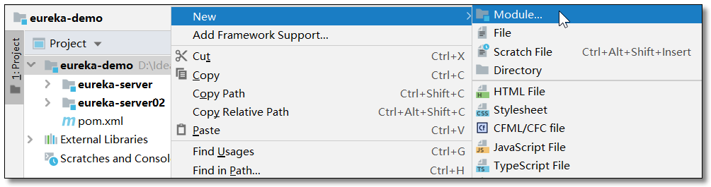 在 Spring Cloud 系列之 Netflix Eureka 注册中心(一)的项目父工程下再创建一个 eureka-server02 注册中心的项目,如果是多机器部署不用修改端口,通过 IP 区分服务,如果在一台机器上演示需要修改端口区分服务。