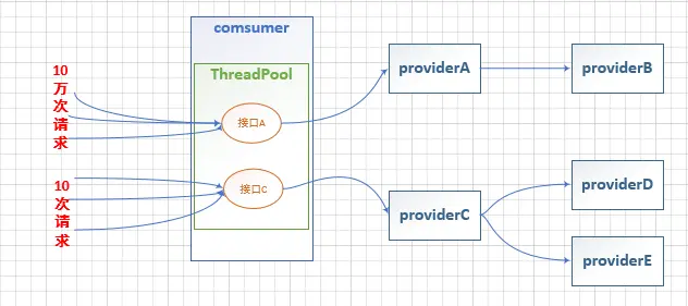 没有线程池隔离的项目所有接口都运行在一个 ThreadPool 中,当某一个接口压力过大或者出现故障时,会导致资源耗尽从而影响到其他接口的调用而引发服务雪崩效应。我们在模拟高并发场景时也演示了该效果。