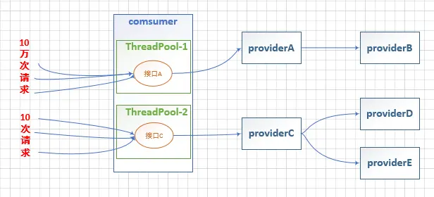 服务消费者业务层代码添加线程隔离规则。