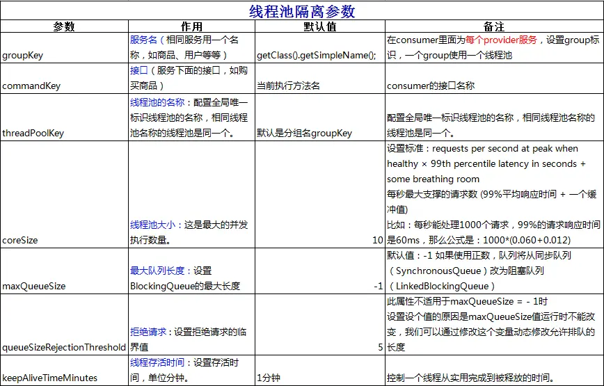 @HystrixCommand 注解各项参数说明如下: