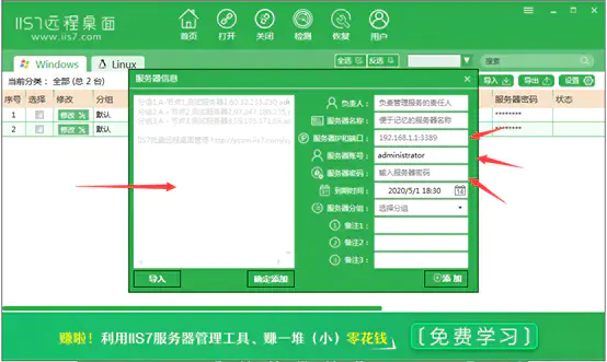2.IIS7远程桌面 是专业vps管理服务器管理的工具,功能多样化,并且不断的改善,可批量管理WIN系列服务器,VPS,电脑。批量导入服务器的IP,端口,账号和密码。批量打开N个服务器的远程桌面 。