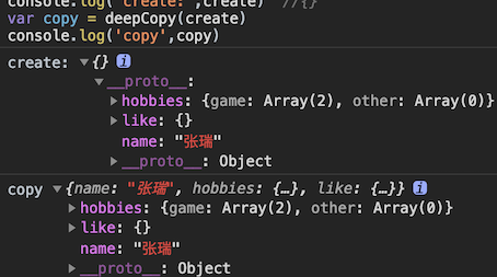 console.log(JSON.stringify(myCopy)) // {"name":"张瑞","hobbies":{"game":["LOL","吃鸡"],"other":[]},"like":{}}