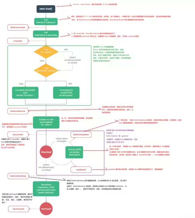 Vue 实例有一个完整的生命周期,也就是从开始创建、初始化数据、编译模版、挂载 Dom -> 渲染、更新 -> 渲染、卸载等一系列过程,我们称这是 Vue 的生命周期。