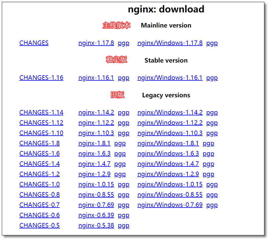 官网:nginx.org/en/download… 下载稳定版。为了方便学习,请下载 Windows 版本。