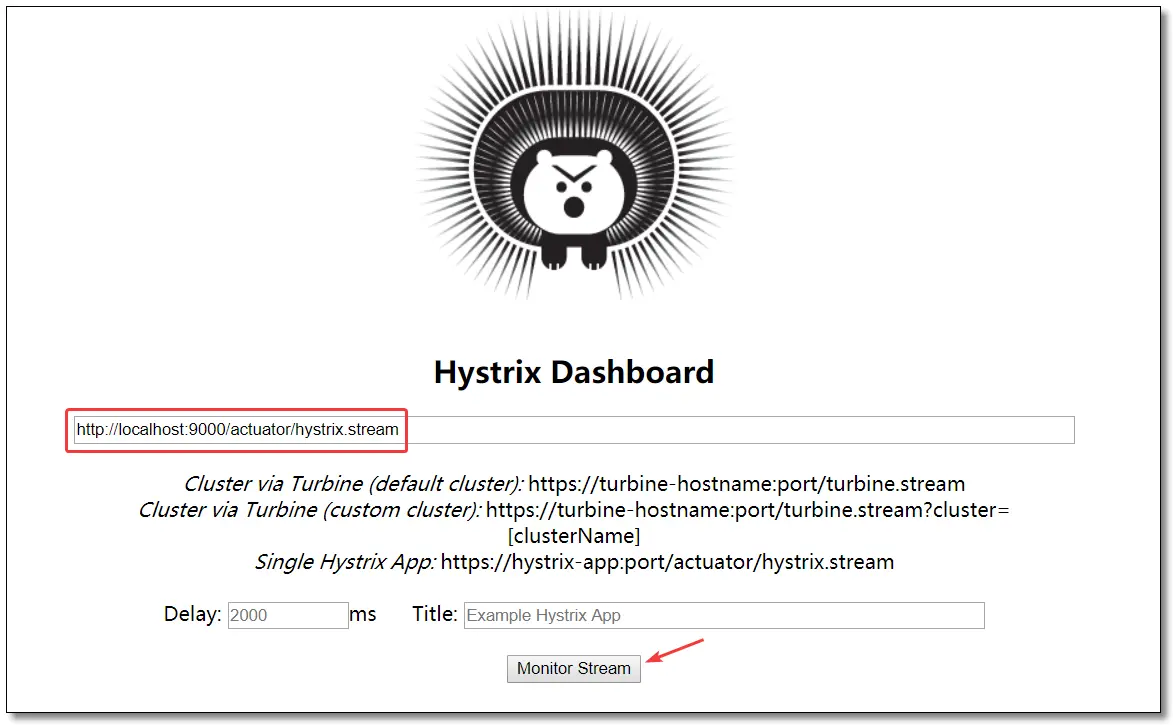访问:http://localhost:9000/hystrix 监控中心界面如下: