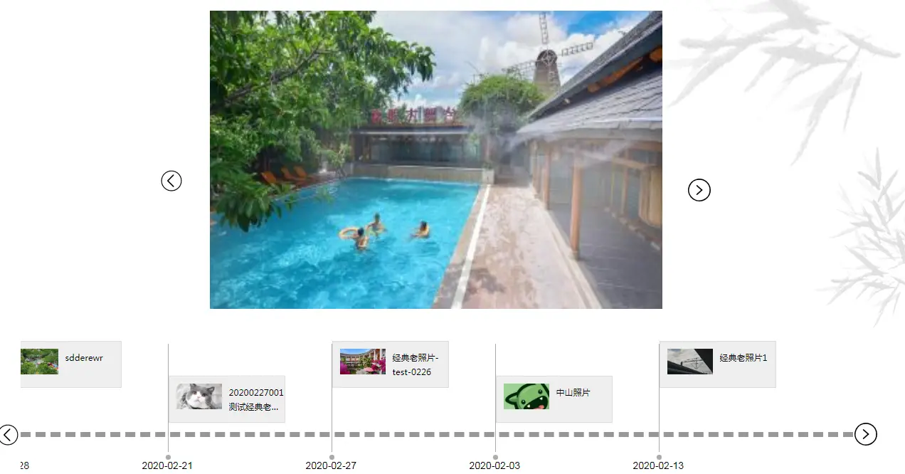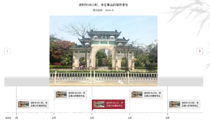- 上下两层,上层样品轮播,下层层进式时间轴+小型样本展示,要注意的是上下两层的样品是有逻辑的,即点击下层小样品,上层样品会有响应