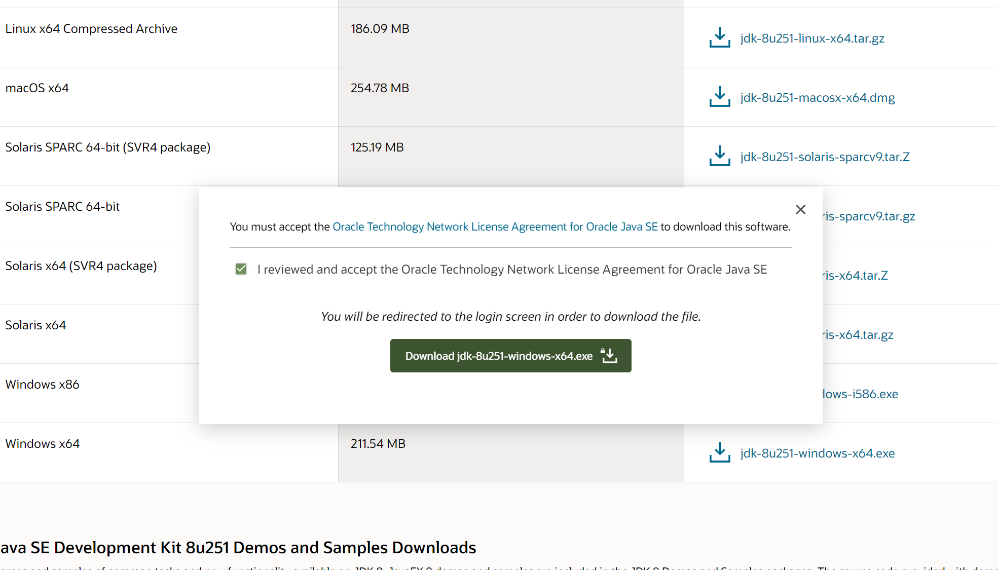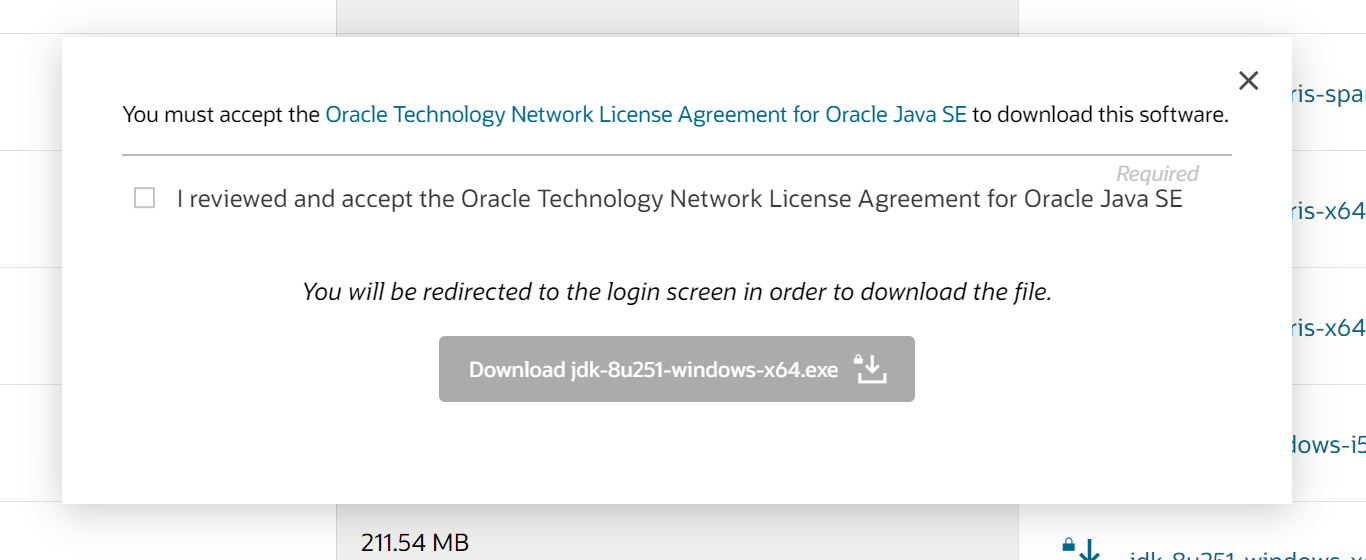 - 这时会跳转到oracle登录界面,有账户登录,没有就注册一个。之后就会下载安装包。