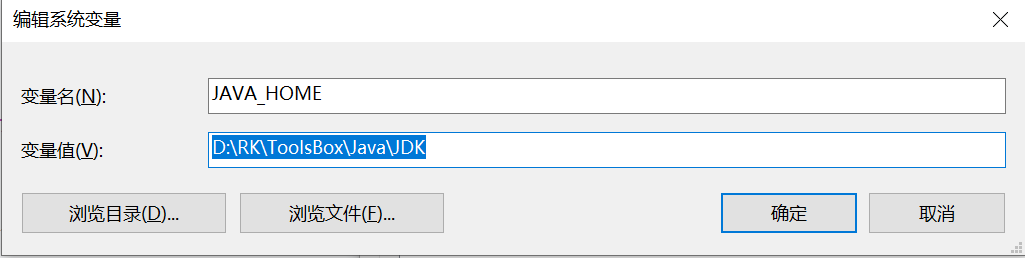 再新建JAVA_HOME,变量值为JDK路径(Java下面有两个文件,一个是JDK,一个是JRE,选JDK)