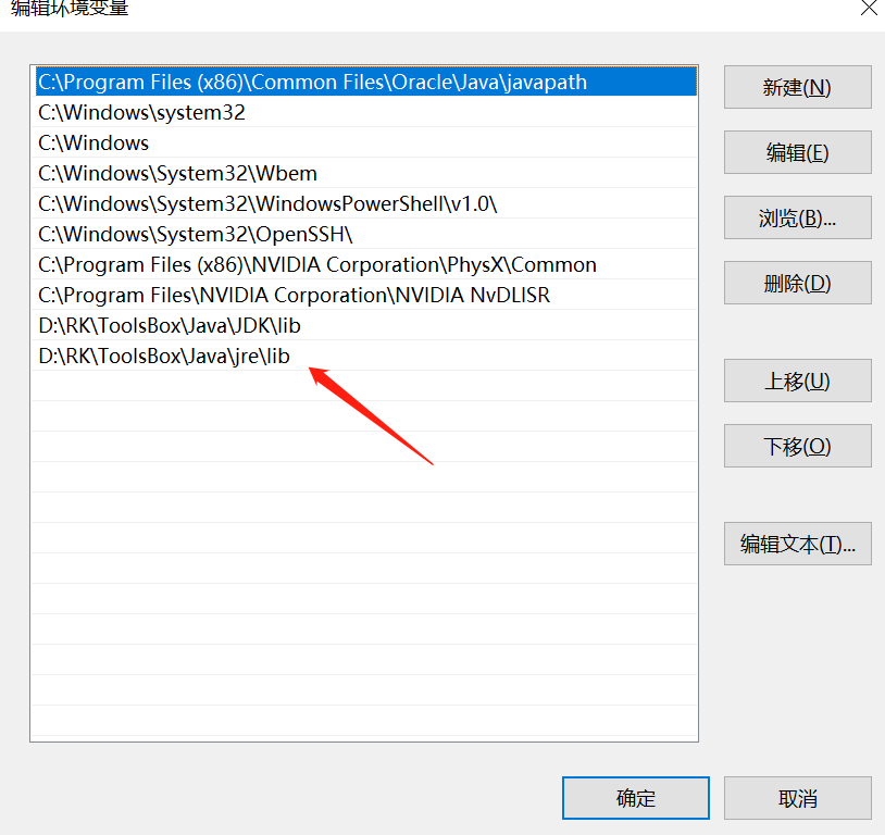 注意是下方的系统变量,不是上面的用户变量 CLASSPATH,JAVA_HOME为新建,Path为原有的基础上新增