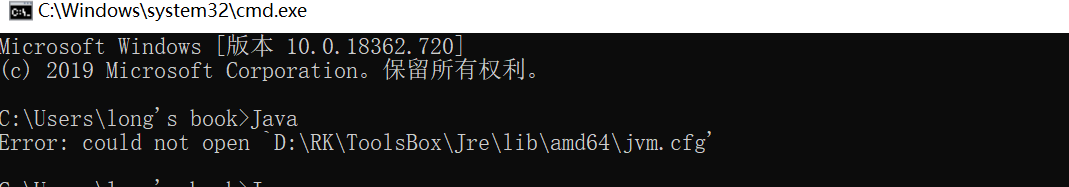 出现这种情况大多是因为电脑上之前安装过JDK,卸载重装之后,运行java命令会出现error:could not open …jvm.cfg的错误。