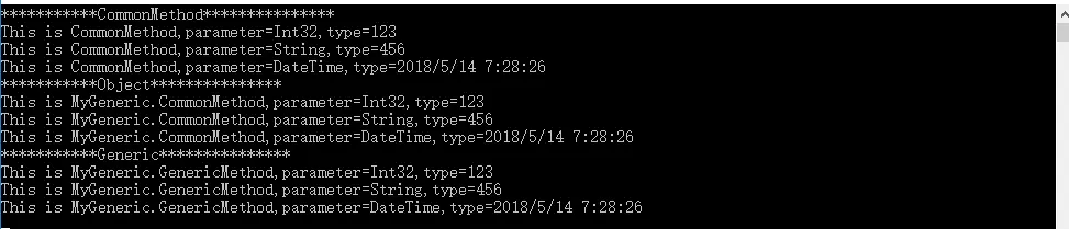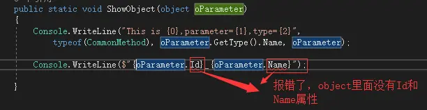从上面的结果中我们可以看出,使用Object类型达到了我们的要求,解决了代码的可复用。可能有人会问定义的是object类型的,为什么可以传入int、string等类型呢?原因有二: