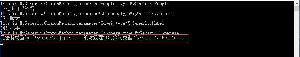 控制台程序最终会编译成一个exe程序,exe被点击的时候,会经过JIT(即时编译器)的编译,最终生成二进制代码,才能被计算机执行。泛型加入到语法以后,VS自带的编译器又做了升级,升级之后编译时遇到泛型,会做特殊的处理:生成占位符。再次经过JIT编译的时候,会把上面编译生成的占位符替换成具体的数据类型。请看下面一个例子: