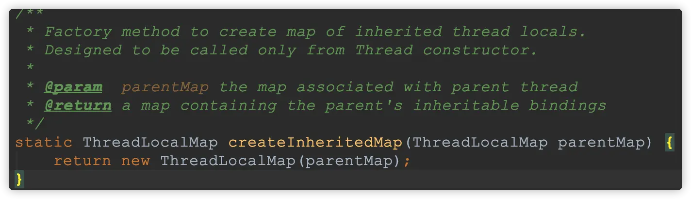这个实现的思路就是在创建子线程时,子线程主动引用父线程中的inheritableThreadLocals对象值,上源码: