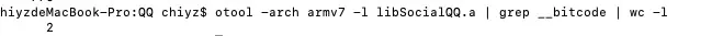- 分析静态库(.a文件) 如果输出的数字不等于0,就表示支持bitcode