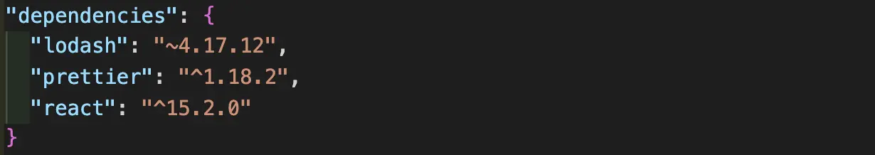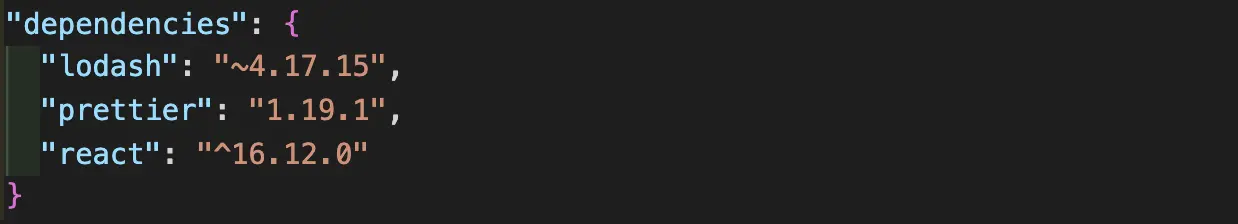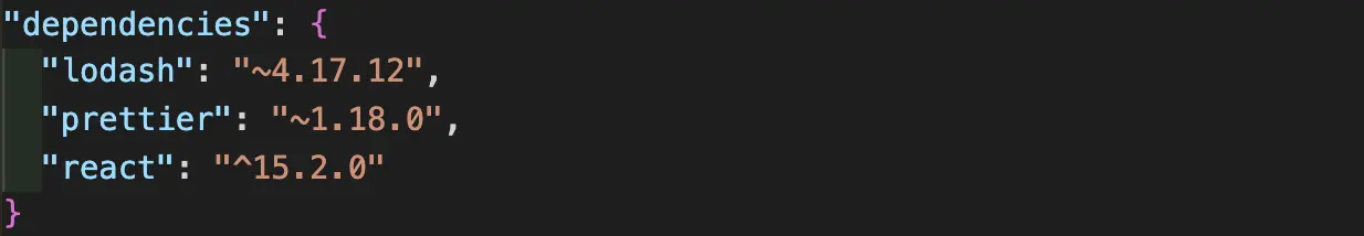 太概念化了是吧?来举个例子,我们把 Prettier 的版本从 “1.18.0” 改成 “~1.18.0”: