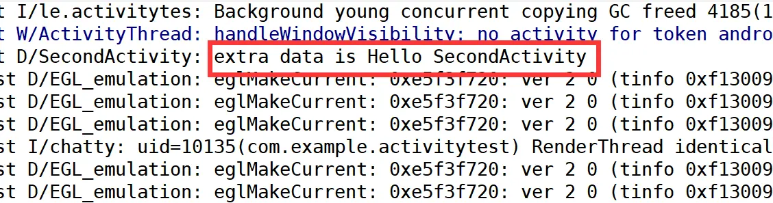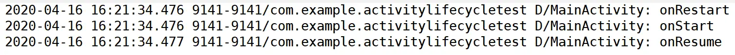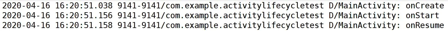 这里在override fun onCreate(savedInstanceState: Bundle?) { super.onCreate(savedInstanceState) Log.d(tag, "onCreate") setContentView(R.layout.activity_main) if (savedInstanceState != null) { val tempData = savedInstanceState.getString("data_key") Log.d(tag, tempData) } }Bundle不为空的情况下获取其中存储的数据并进行打印。
