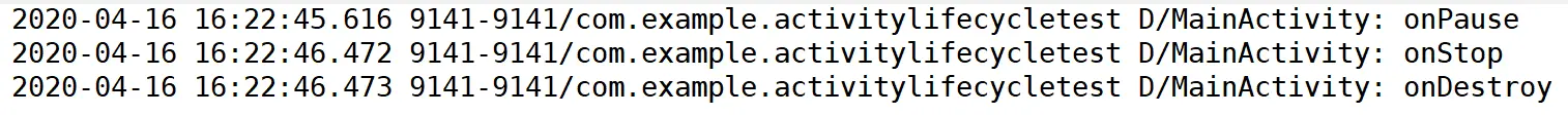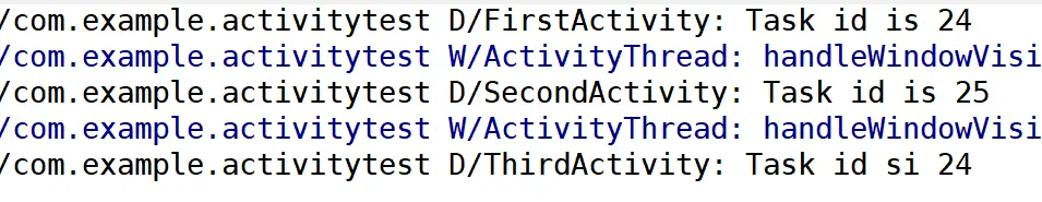 override fun onCreate(savedInstanceState: Bundle?) { super.onCreate(savedInstanceState) Log.d("SecondActivity", "Task id is $taskId") setContentView(R.layout.activity_second) button2.setOnClickListener { val intent = Intent(this, ThirdActivity::class.java) startActivity(intent) } } - ThirdActivity