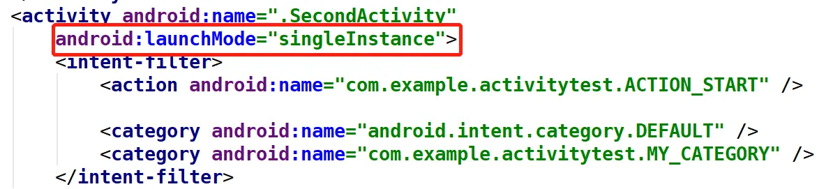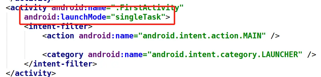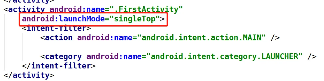 AndroidManifest.xml配置文件中通过给<activity>标签指定android:launchMode属性设置具体的启动模式。