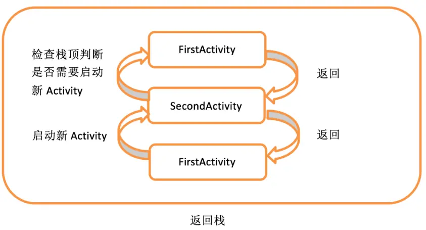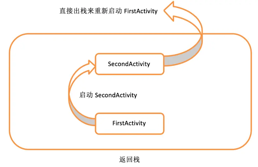 前面使用的 singleTop 模式会判断要启动的 Activity 是否在栈顶,如果不在会进行创建,但是这样也会造成多次创建的问题。但是使用 singleTask 模式就可以解决这个问题,它会判断返回栈中是否又要启动的 Activity 的实例,如果有则直接使用该实例,并将该 Activity 上的 Activity 实例全部出栈。