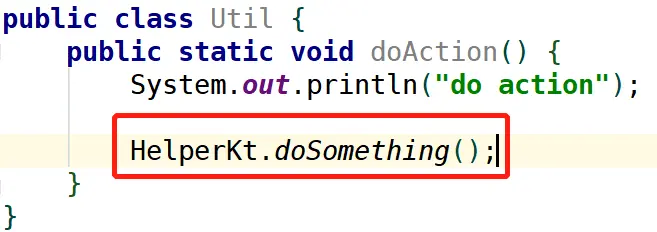 class Util { fun doAction1() { println("do action1") } companion object { @JvmStatic fun doAction2() { println("do action2") } } }通过添加