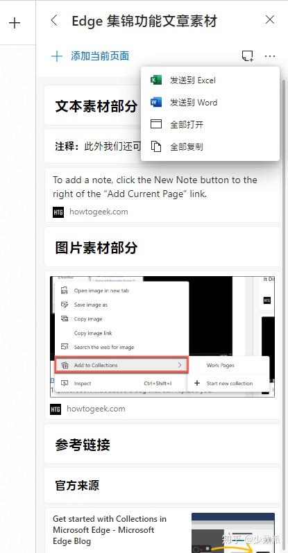 此外我们还可以在集锦项目中手动添加文本注释,文本注释支持基本的格式化操作(加粗、斜体、下划线、无序列表和标题)。当项目中剪藏的内容过多时,我们不妨借助手动注释来对素材进行梳理。如果你的工作流应用以微软自家工具为主,还可以通过右上角的操作选项一键打开、复制剪藏项目,或将这些项目发送到 Excel、Word 进行下一步操作。