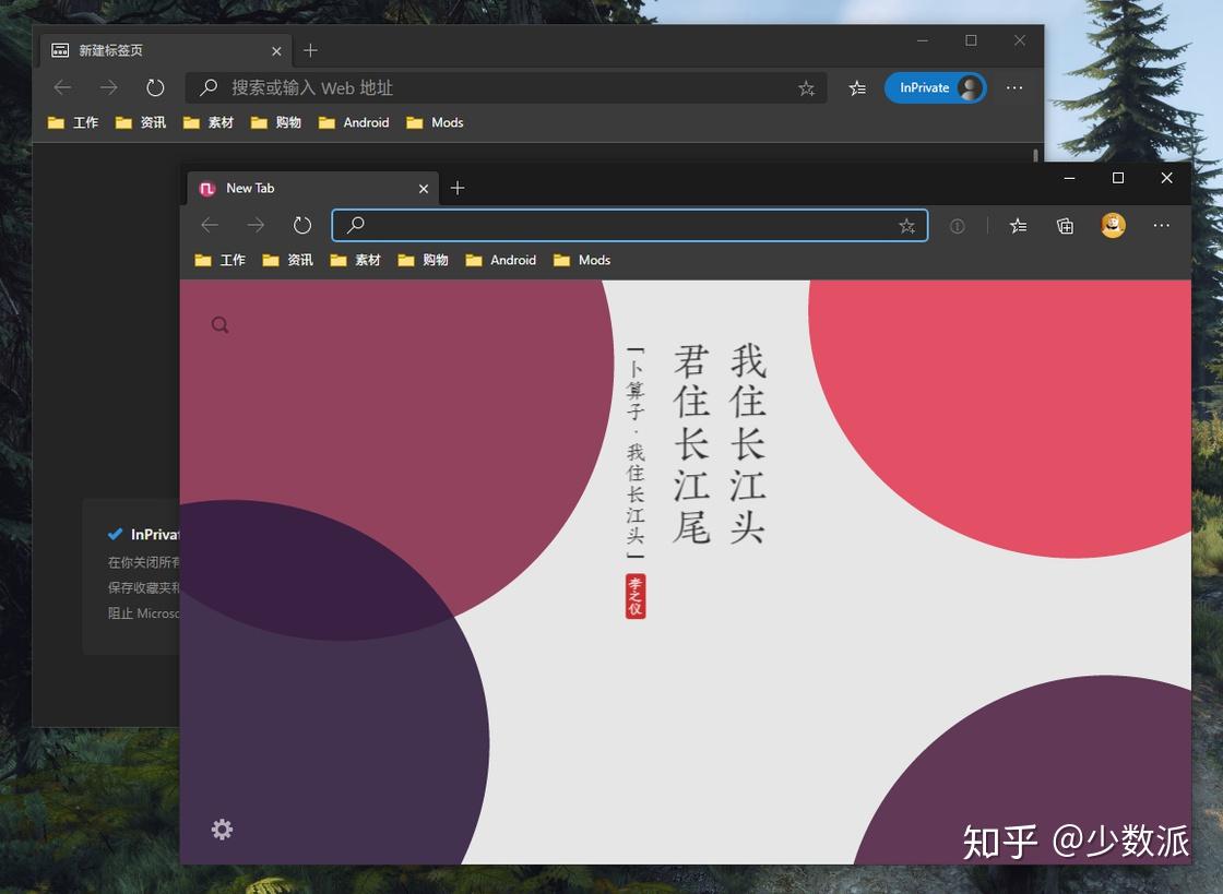 针对此前大量用户反馈的深色主题模式与隐私浏览模式窗口辨识度较低的问题,Edge 81 对隐私浏览模式的浏览器窗口设计进行了微调,在该模式下浏览时,右上角用户头像附近会有一个醒目的蓝色「隐私模式」标签进行提示,避免我们「指错路」把隐私模式的页面扔到其他窗口。