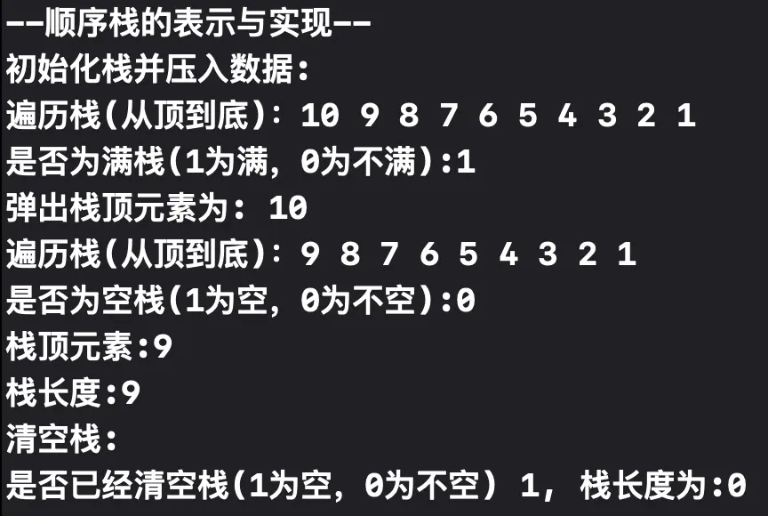 printf("是否已经清空栈(1为空,0为不空) %d, 栈长度为:%d\n", isStackEmpty(stack),getStackLength(stack));