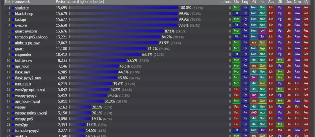 从并发性上来说是完全碾压了 Flask (实际上也领先了同为异步框架的tornado 不少),看来 FastAPI 也真不是盖的,名副其实的高性能 API 框架呀!