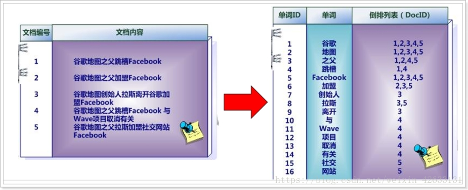 倒排索引(英语:Inverted index),也常被称为反向索引、置入档案或反向档案,是一种索引方法,被用来存储在全文搜索下某个单词在一个文档或者一组文档中的存储位置的映射。它是文档检索系统中最常用的数据结构。