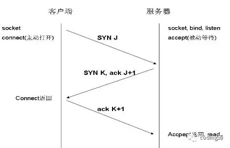 第二次:服务器收到客户端的请求后,生成一个SYN J的回应包(ack J+1)和一个新的数据包(SYN K),发给客户端