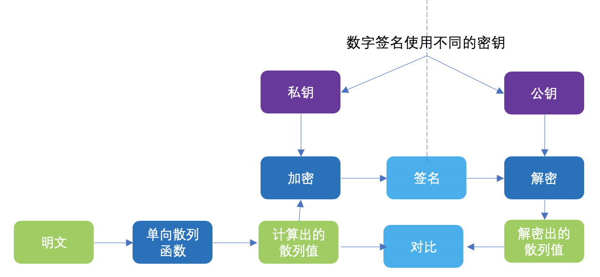 数字签名使用不同的密钥来对消息进行签名和验证。