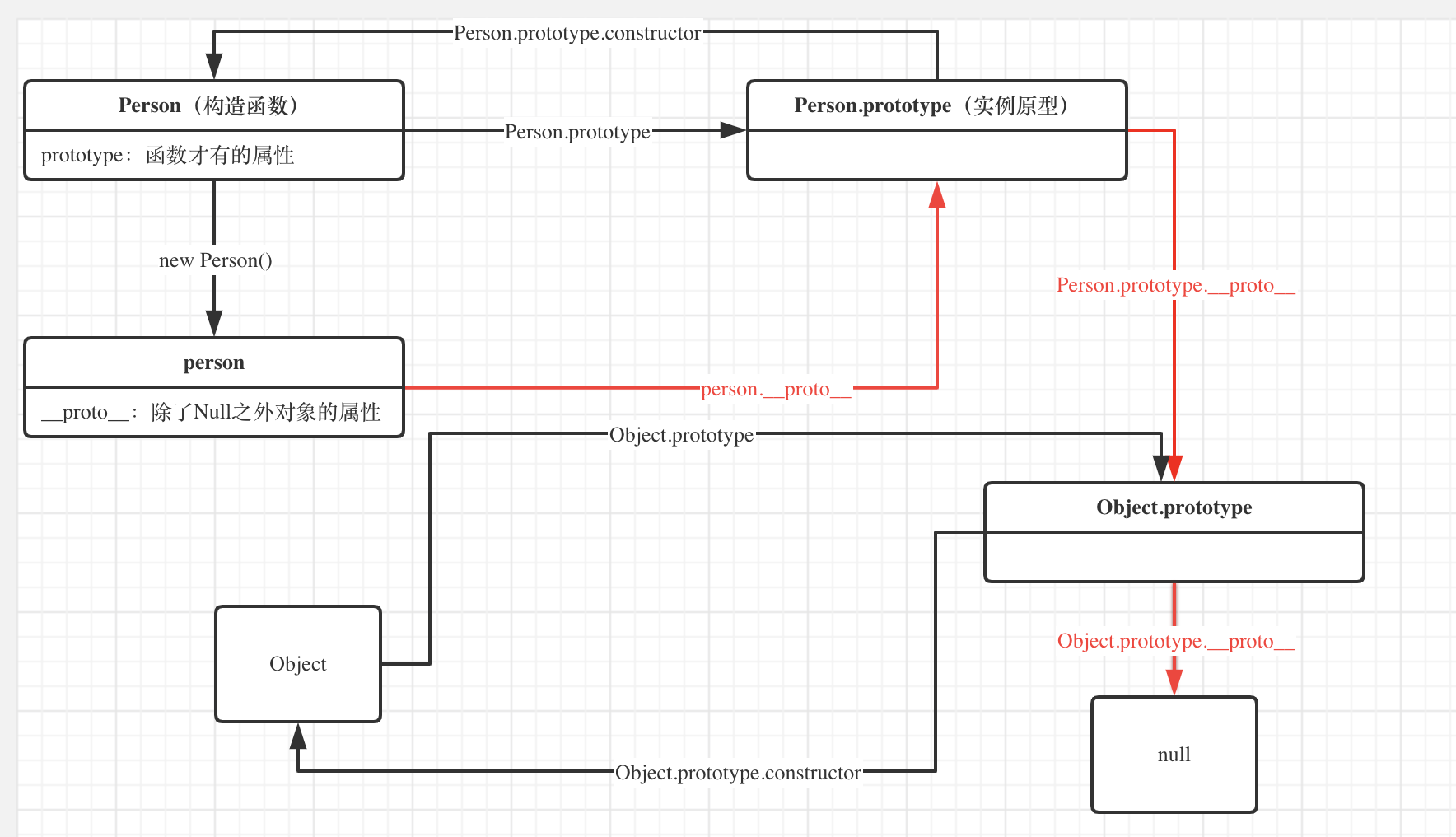 Object.prototype 是最顶层原型,它的原型是 null,即
