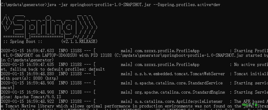 java -jar springboot-profile-1.0-SNAPSHOT.jar --Dspring.profiles.active=dev