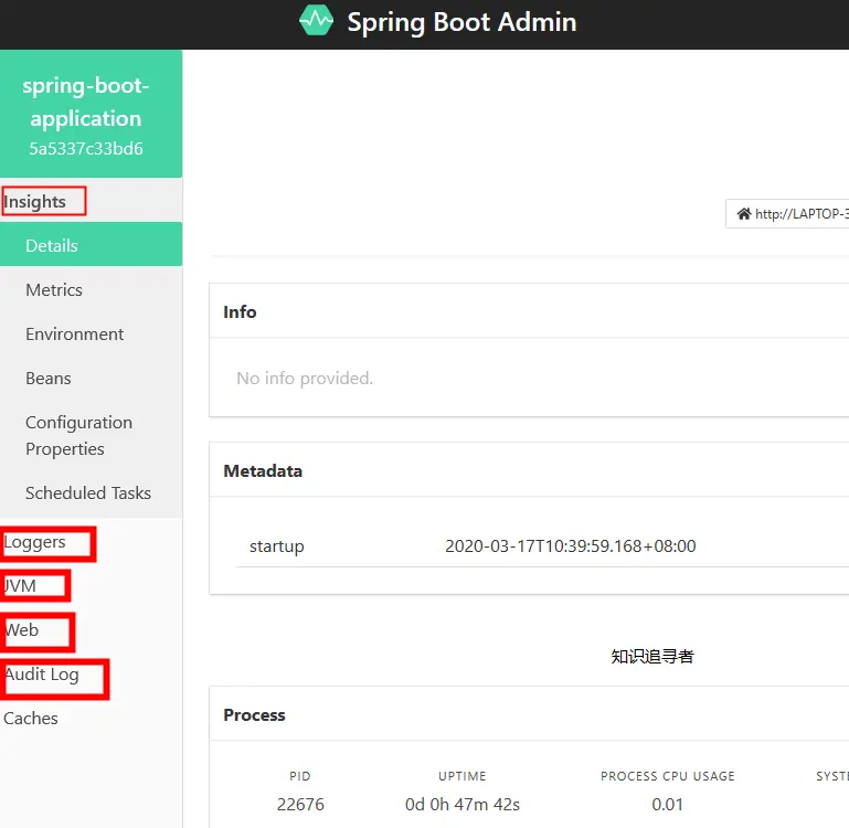 知识追寻者springboot系列文中又添加一文,springboot后台应用监控,希望广大读者支持,多多关注点赞;如果没有学习过actuator端点暴露文章,建议查询知识追寻者专栏进行学习;