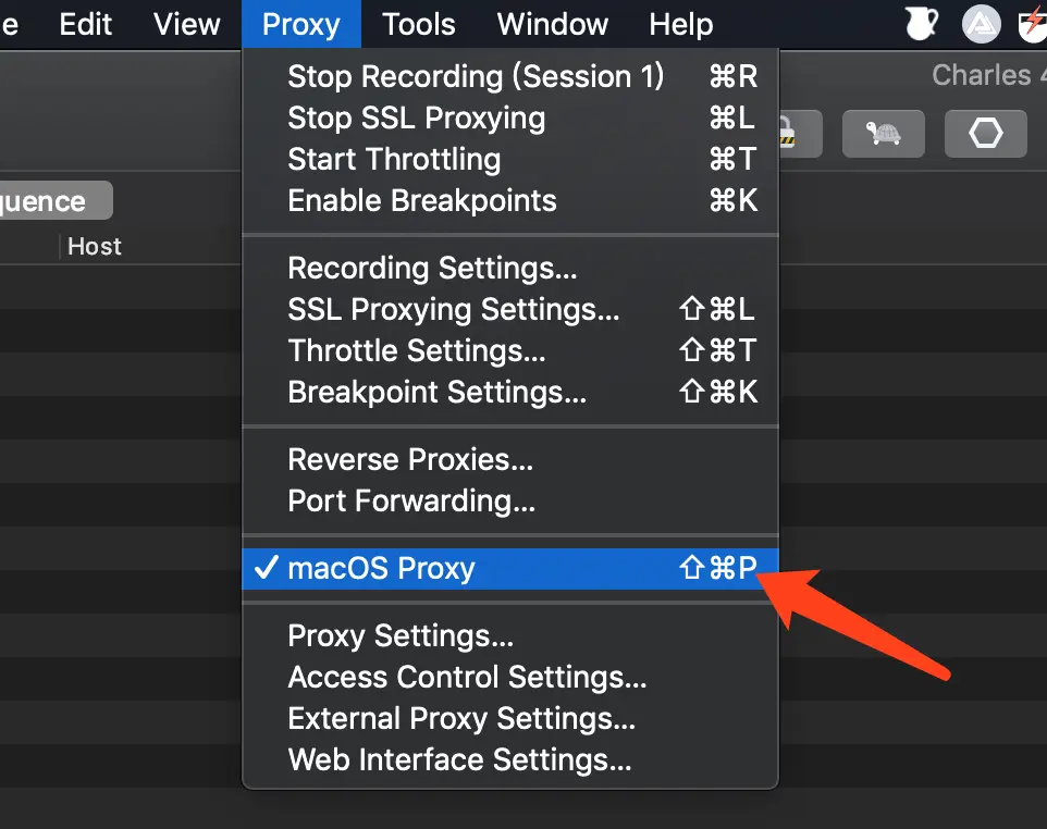 安装好后,打开Charles,在菜单中打开代理