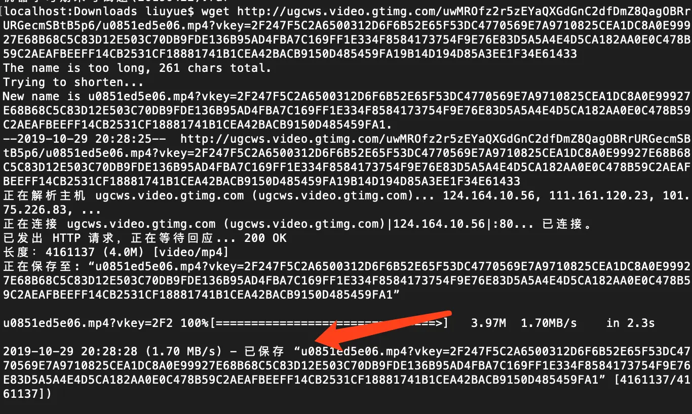 这样我们就获取了手机端播放的视频,随后我们直接可以通过命令或者写python脚本下载到本地,这里我们使用linux命令wget