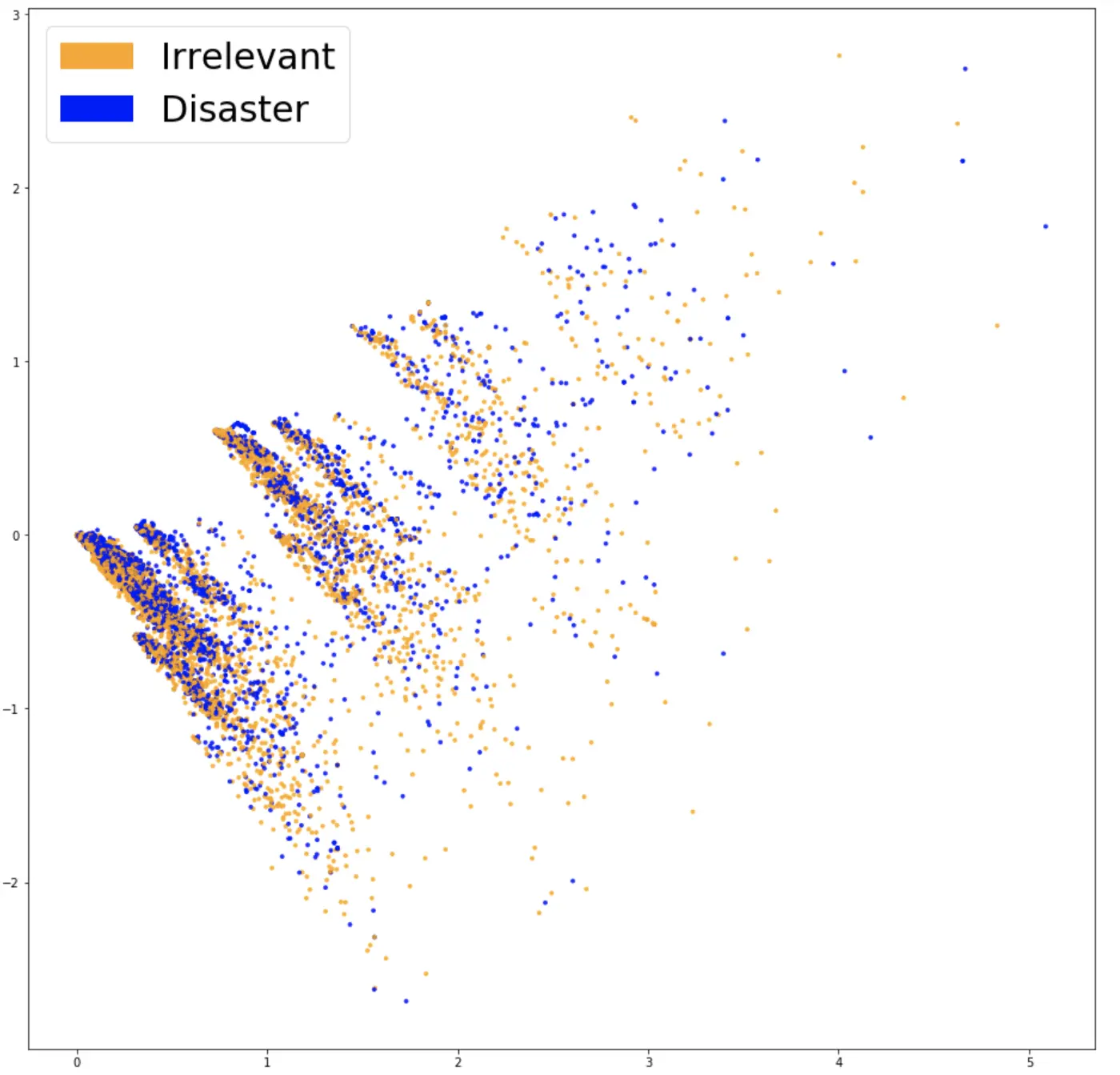 在这篇文章的接下来的部分,我们将把关于灾难的tweets称为“灾难”,将关于其他任何事情的tweets称为“无关”。